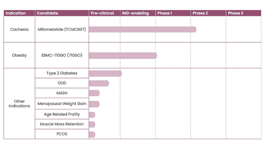 We have developed a proprietary pipeline of therapeutic peptides designed to safely and effectively drug central melanocortin 3 and 4 receptors (MC3R/MC4R) to treat many metabolic disorders and help people live healthier lives. Our lead assets include an oral MC3R/MC4R dual agonist for the treatment of general obesity, and an MC3R/MC4R dual antagonist to prevent and treat cachexia in patients with advanced cancers.